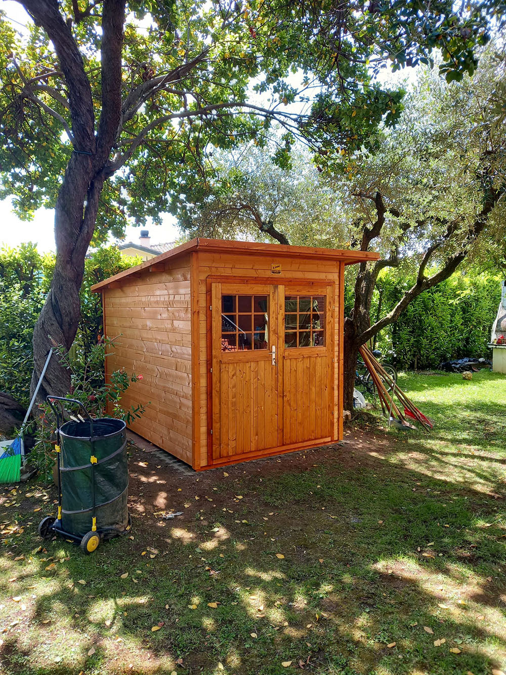 La libertà di esprimere la tua creatività è nelle tue mani! Optando per casette in legno grezzo, hai la possibilità di personalizzare il colore dell'impregnante. Immagina il tuo rifugio immerso nel verde del tuo giardino, con il colore che rispecchia perfettamente il tuo stile e la tua personalità.